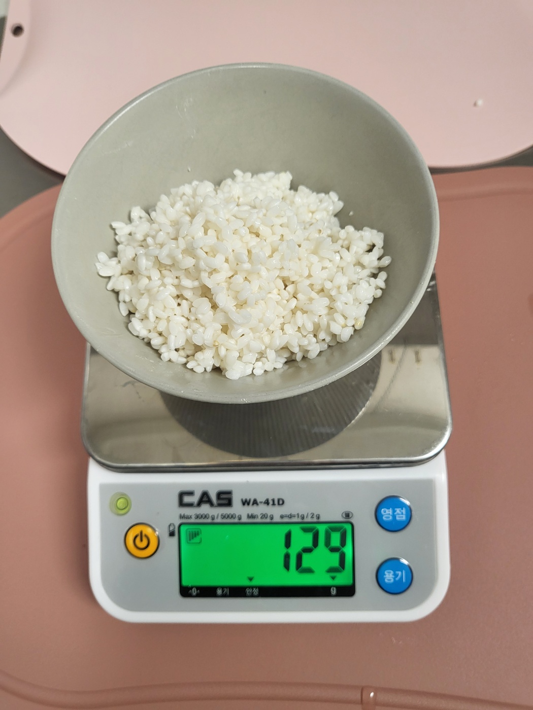 불린쌀에서 물을 빼고 무게를